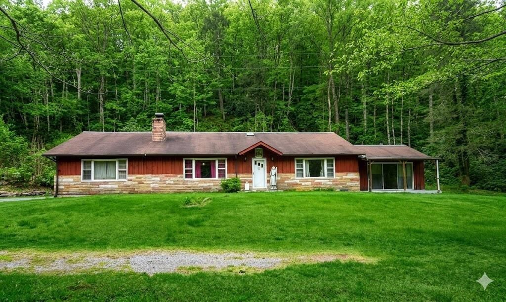 ''Minnehaha Pride.'' Nature's dream. 15.07+/- acres bordering thousands of acres of Monongahela National Forest and Knapps Creek, one of the best stocked trout streams on the East coast. Although the 3 bedroom, 2 bath house needs updates, the house is spacious, 3000+ sq ft, and perfect for a camp or full-time residence. The cozy living room, warmed by the fireplace, features natural wood and stone accents. Walk out to the stone patio, enjoy the outdoor stone fireplace, and relax by the creek. You are steps to the national forest. The private driveway is lined with rhododendron, WV's state flower. A detached one car garage with workshop...read more